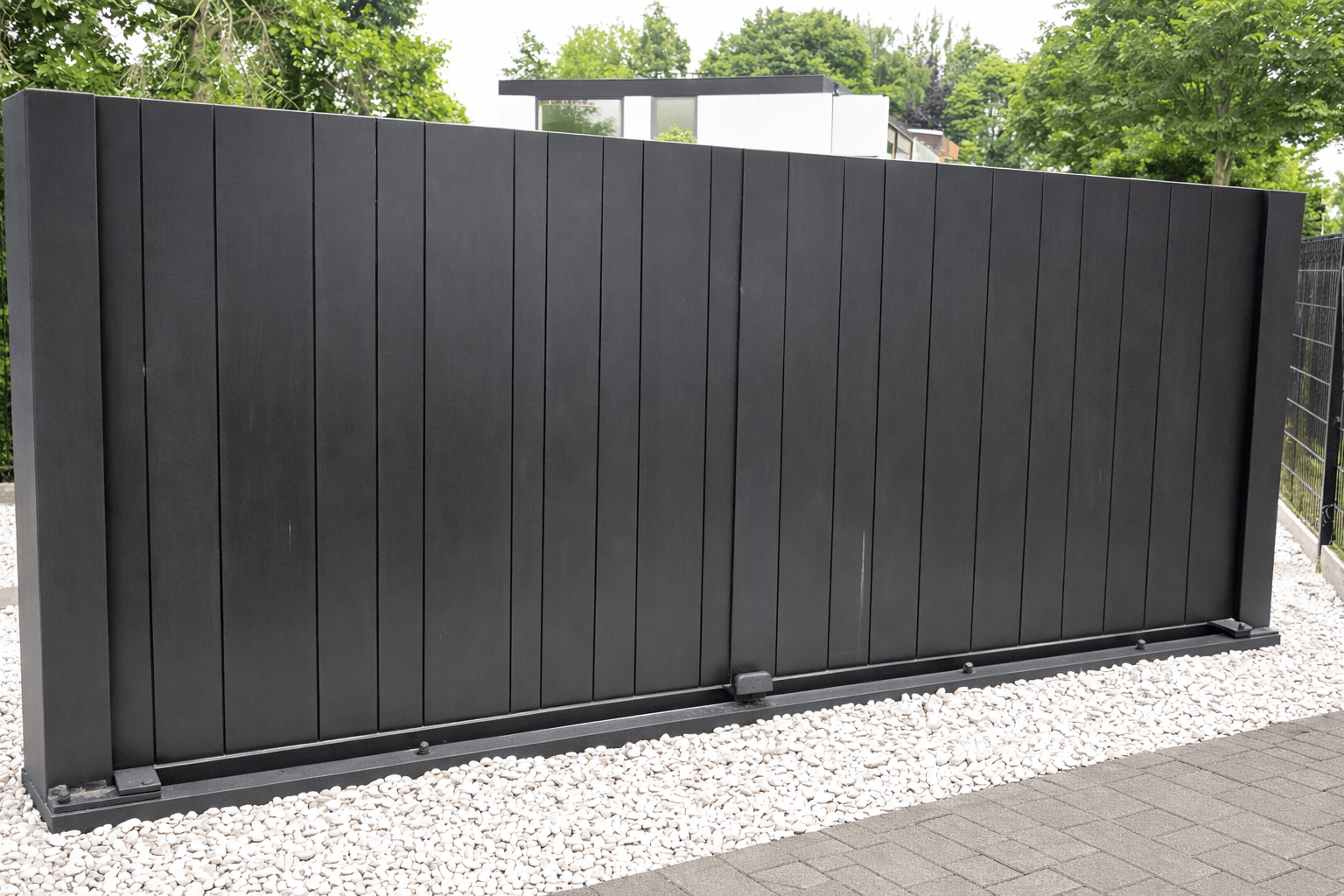 De Camilla-poort van Ragoen heeft een uitgesproken hedendaagse identiteit. Het grafische design, opgebouwd rond een spel van verticale lamellen met variërende breedtes, creëert een gevoel van ritme en diepte en maakt van de poort een volwaardig architecturaal element. Een ideale oplossing voor moderne eigendommen met een sterke persoonlijkheid.