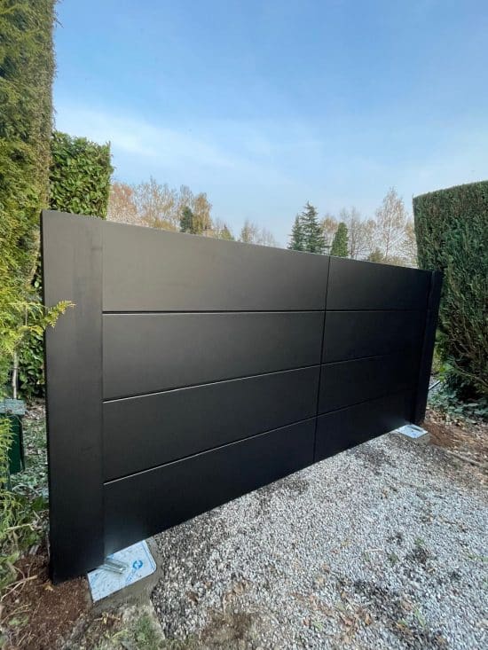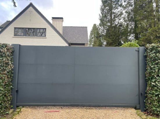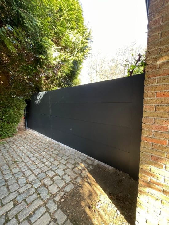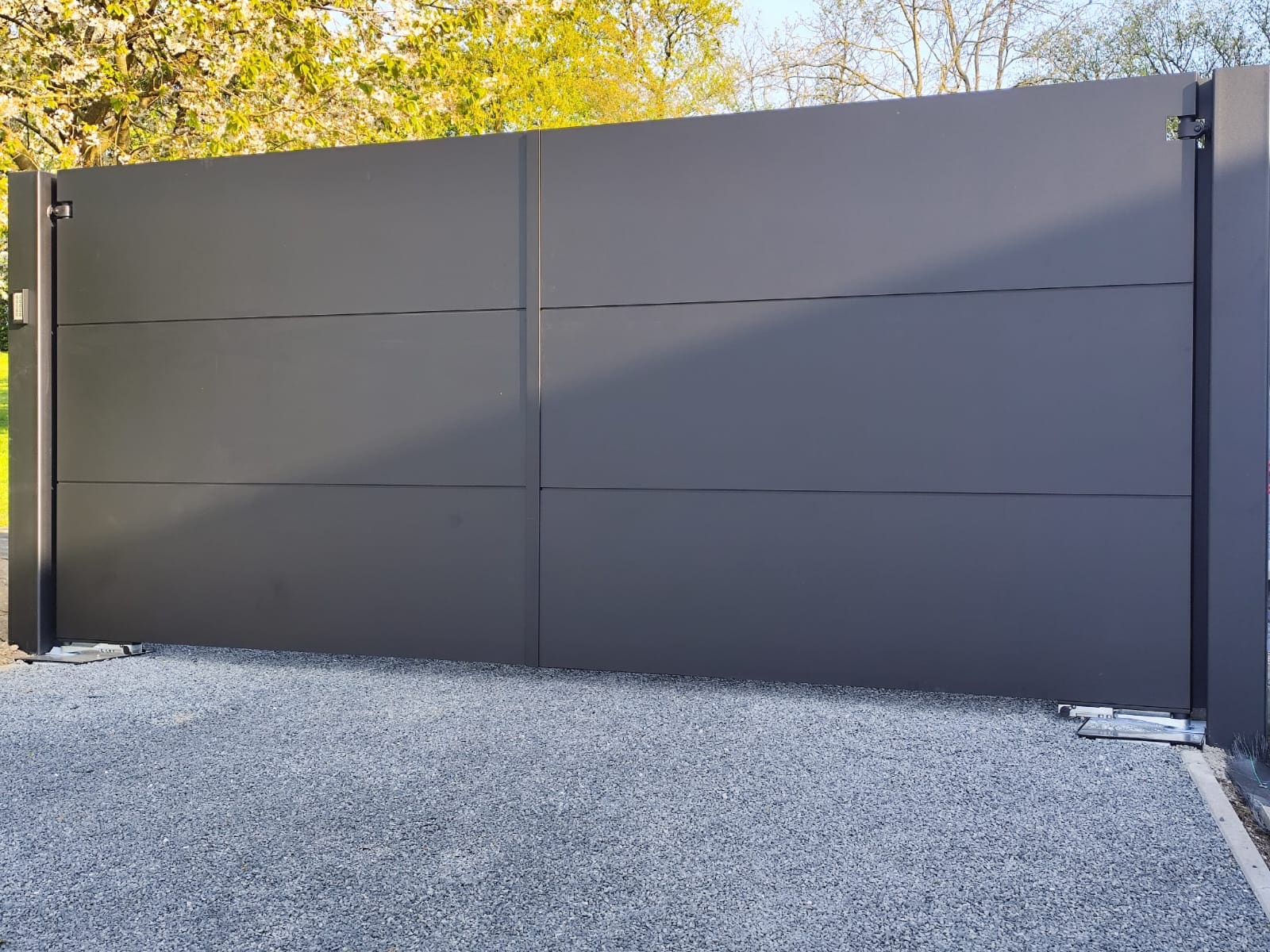 De Essence-poort belichaamt het perfecte evenwicht tussen een strakke vormgeving en verfijning. Het subtiele motief, gecreëerd door groeven die volle rechthoeken vormen, geeft deze poort een elegante en tijdloze uitstraling. Volledig dicht, garandeert hij maximale privacy en beschermt uw terrein tegen nieuwsgierige blikken, terwijl hij een vleugje klasse toevoegt aan uw oprit.