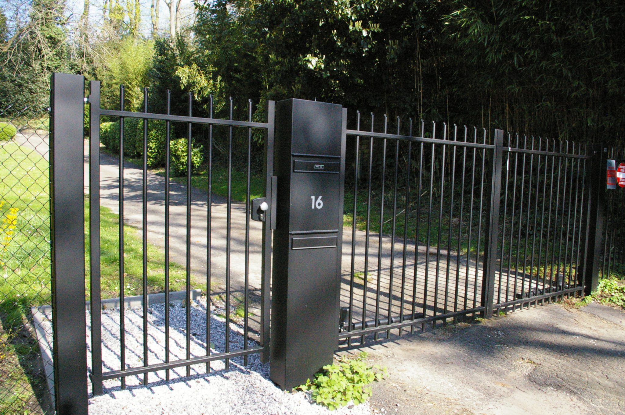 Le portail Horizon de Ragoen se distingue par son design contemporain et épuré, composé de barreaux plats disposés sur la tranche en vertical. Cette conception unique offre une esthétique légère et aérienne, tout en garantissant une délimitation élégante et sécurisée de votre propriété.